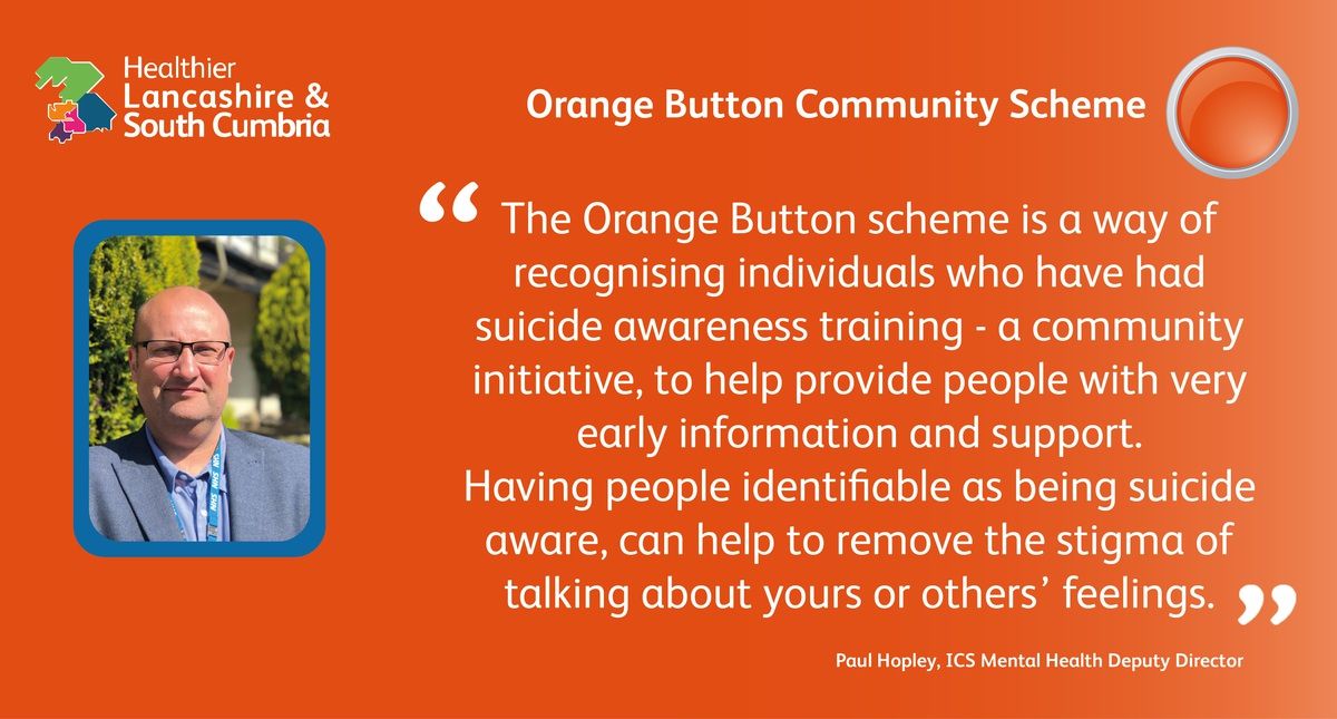 If you are ready to book onto a course, go straight to Lancashire Mind's booking page. Please book one of the four courses named above to ensure you qualify to become an orange button holder.